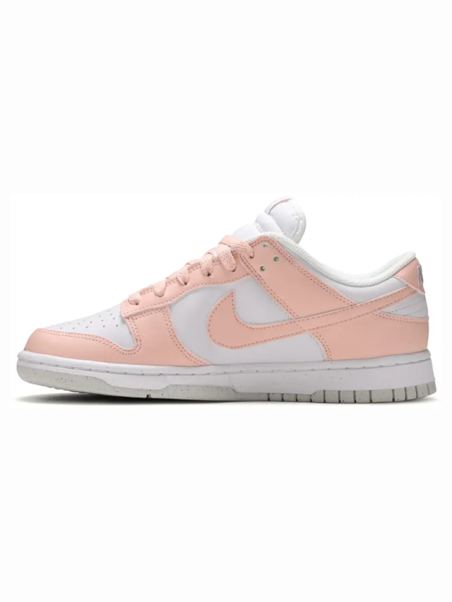La Nike Dunk Low Next Nature Pale Coral WMNS revisite la silhouette iconique avec une approche écoresponsable, intégrant au moins 20 % de matières recyclées dans sa conception.
