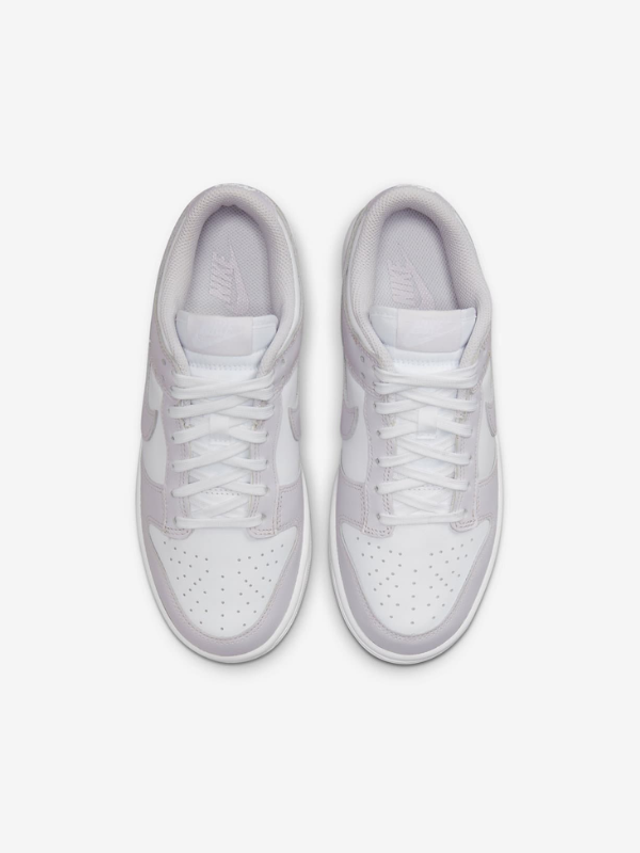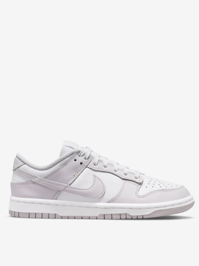 Elle présente une base en cuir blanc contrastée par des empiècements lilas pâle, appliqués sur le Swoosh, les œillets, ainsi que l’avant et l’arrière du pied. Une étiquette Nike tissée orne la languette en nylon respirant, tandis que le Nike wordmark brodé vient habiller le heel tab pour une finition soignée.