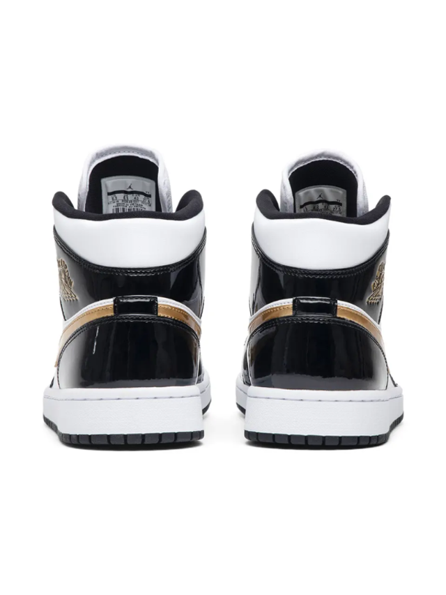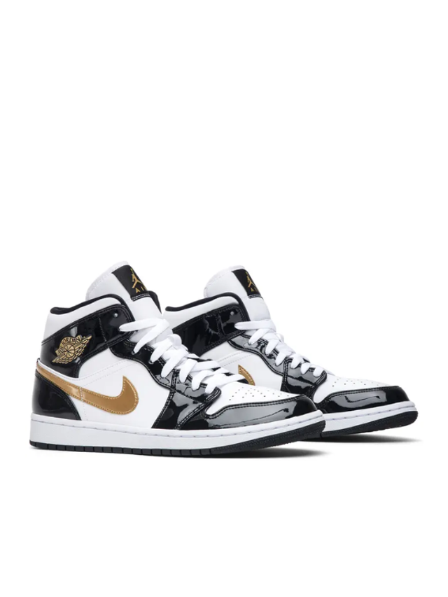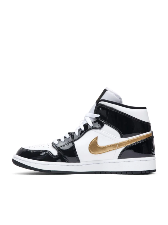 Air Jordan 1 Mid Patent Black White Gold (Taille 44)